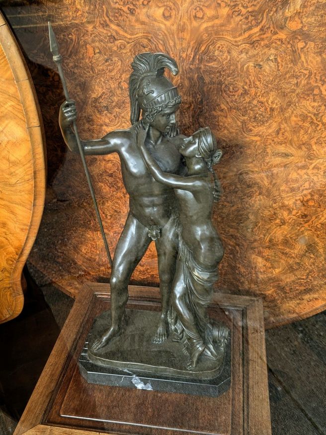 With time, I may even save up enough money to shop at the antique store next door to the bike shop. The other day, I spotted this bronze statuette depicting role playing during the Roman Empire.