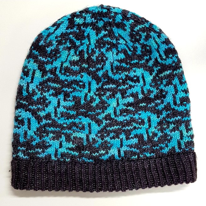 It’s meant to be tessellated lizards based on the work of the artist MC Escher. You know, Dutch guy? Not the one who cut his ear off, but the one who doesn’t know how stairs work? Anyway, I think this could have worked better with sock weight yarn which would have allowed for more complex details.