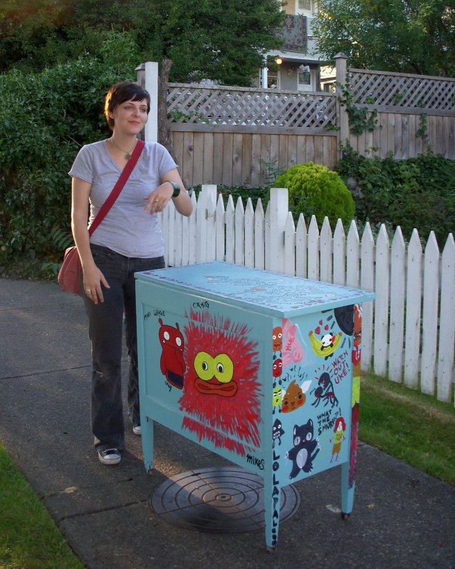 Addendum: I invited several friends to help me paint this dresser and this was the result. (Victoria won the shitty poetry contest.)