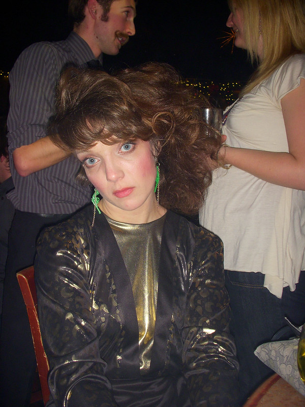 Perhaps the point of those parties is to show your peers how good you can look outside the office? Last night, I showed them all how stunning I look in velvet. I wore a velvet dress with poofy sleeves and a big bow above the butt. My face was caked with the most colourful makeup I could get my hands on. I was getting high off the fumes from my big hair. To top it all, my date was stunning in a black and gold pantsuit!