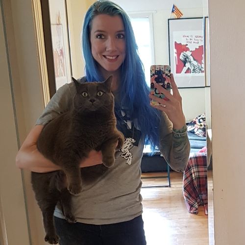 I was prepared to gain weight, as that’s what often happens when skinny people build muscle. Yet, in the above photo, I weigh the same as I did a year ago, without a cat in my arms, and that’s a lotta cat. This is the closest thing I have to a “Before” photo.