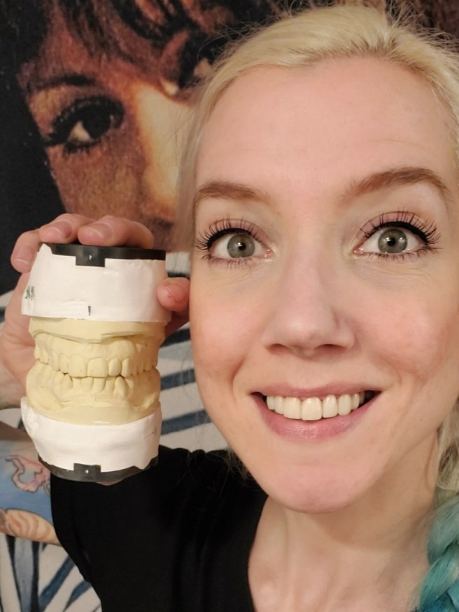 Did I get the chance to take a photo of my nubbins before the dentist covered them up? I sure did! It’s simultaneously hilarious and horrifying! Even though it’s not close to being the least attractive photo of me in existence, I’d prefer to share it in-person so that I can enjoy people’s reactions.