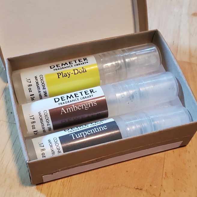 Jessie’s Cup of Opportunity brought her the opportunity to smell weird. I’ll warn you that if you want to check out the Demeter website, do so in incognito mode. Otherwise, Demeter ads will haunt you for weeks. I had to revisit the Bradford Exchange website just to get the Demeter ads to stop. I realize this could’ve been remedied with the clearing of cookies, but I don’t mind seeing ads for Elvis ornaments.