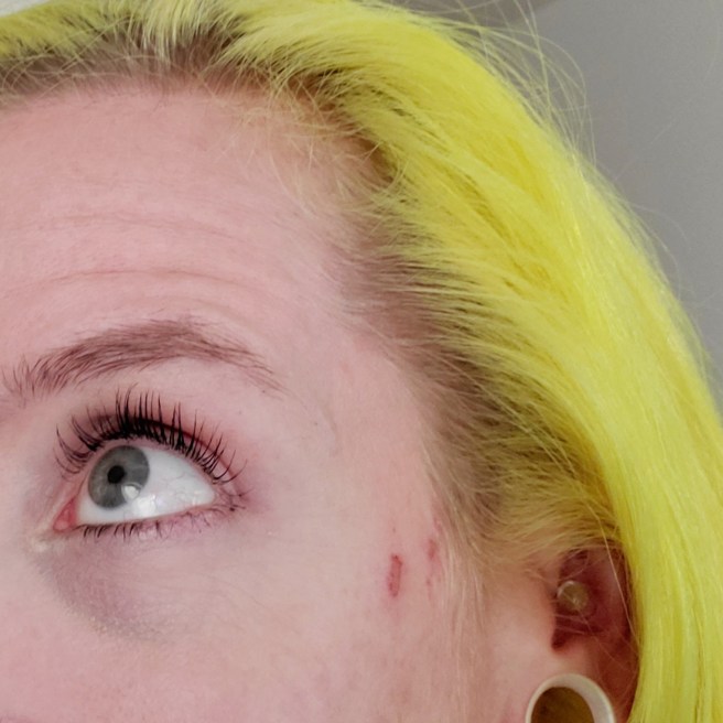 Scratching my face happens to be one of the first things I’ve ever done in my life, as you can see in my newborn photo. (CW: ugly baby.) I was one of those babies that had to wear tiny bags over their hands to protect myself from my itty bitty, adorable razor-sharp fingernails.