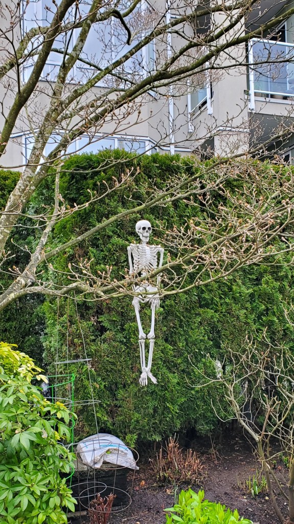 While Victorians hang onto their Christmas decorations, Vancouverites are all about Halloween. That isn’t Zoée’s place, but they’ve made a skeleton a permanent fixture of their garden.