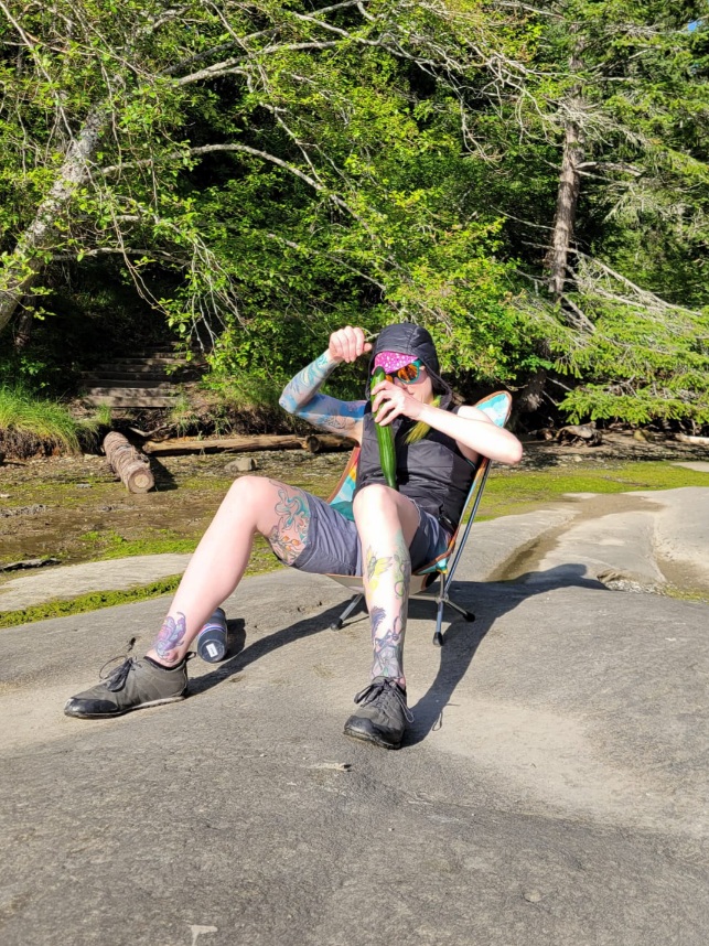 We did it: two ferries, 111km, and 1111m elevation gain later, I was at Descanso Bay with my camp chair and cucumber.
