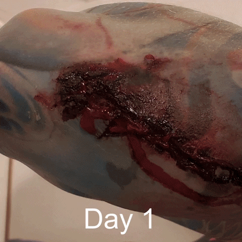 No need: I saved it. Sensitive readers and the Giphy team might not want to click on this link leading to the offensive gif showcasing my mutual healing powers. More precisely, it’s my arm gash sealing shut over 26-days. Neat-o!