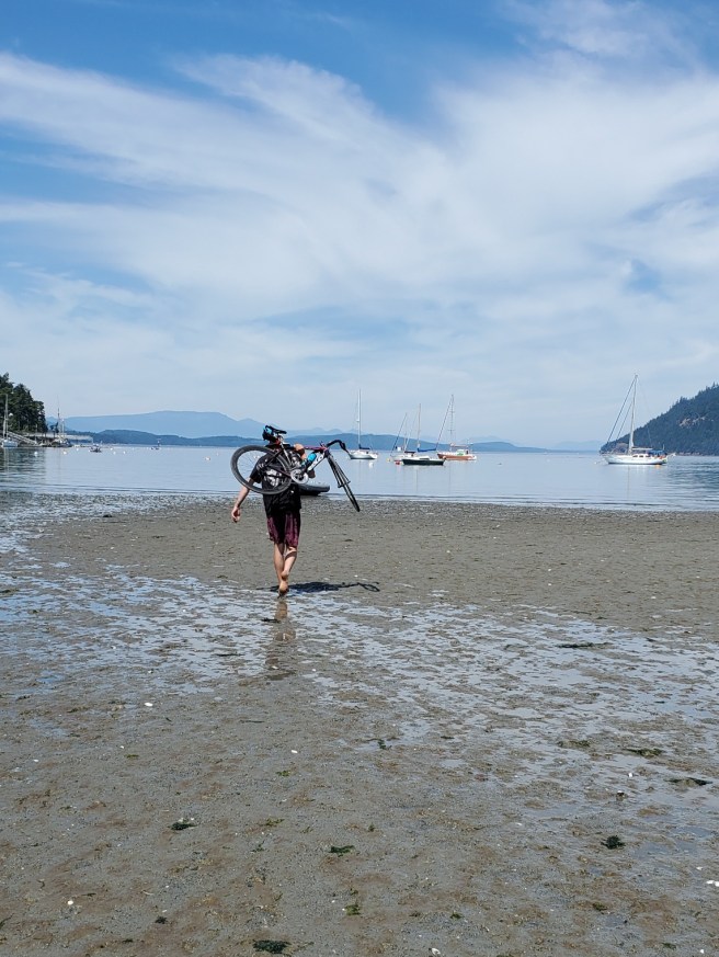 My mini-vacation concluded with a ride to the ferries, where I boarded a boat to Mayne Island, where my bike and I got on a raft that took us onboard a sailboat owned by the one known as Vancouver Paramour.