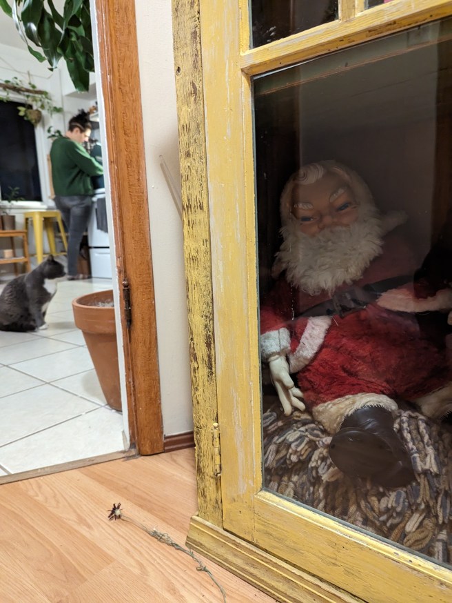 Their entire place is impeccably decorated. There are so many things to look at, but everything has its place. Even creepy Santa.