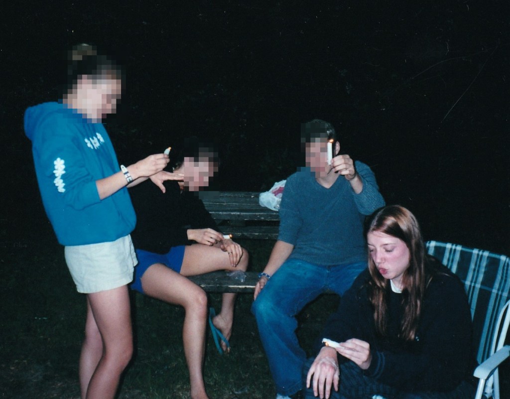 As you can see in the photo, there are three others doing the same. I have blurred out their faces out of respect for the possibility that they’d be embarrassed by the photo even though it was taken over twenty years ago. None of us were on drugs, nor had we been drinking. It was just a thing we decided to do one night while camping.
