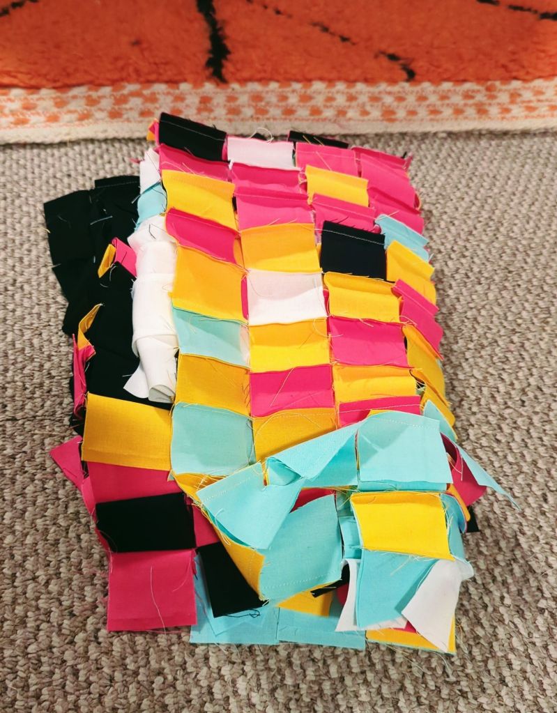 So, I have all my rows in a row. Next, I need to press the seams open and sew the rows together.