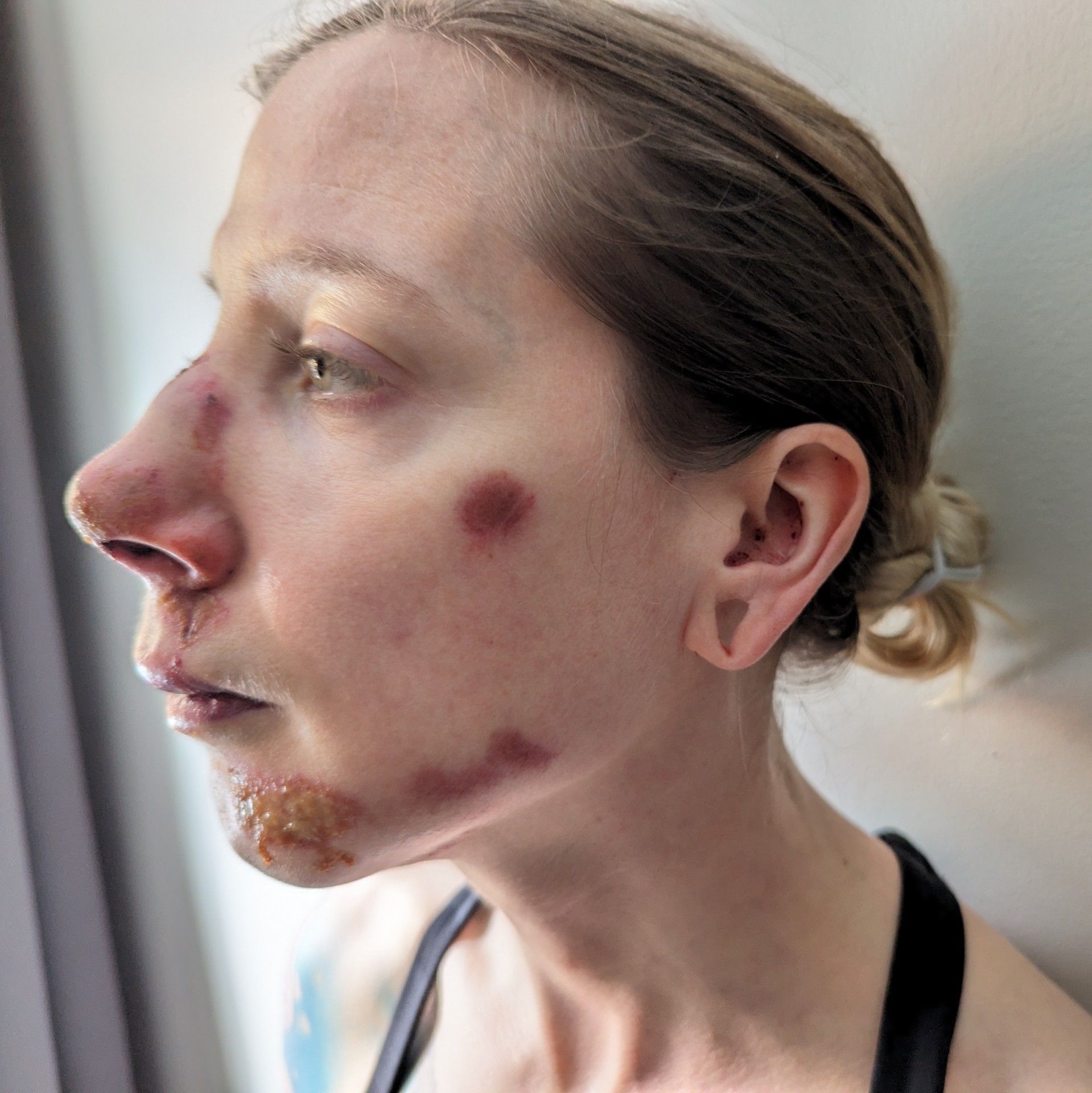 Interestingly, only Cycling BC required post-accident photos. My ICBC Claims Specialist only just had me send current pictures of my scars. If they’re visible in a year from now, I may be entitled to compensation. They seem to base the payout on the size, regardless of placement. What will they award me for the 1cm scar below my left nostril? $10?