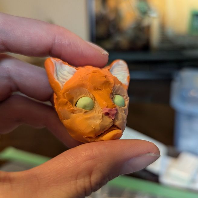 1. Small but mighty— what a fantastic mini sculpture! That little sculpey cat even has an attitude. I like the shadow box solution, too. It can still serve its original purpose, but in the box it has more gravitas. Maybe those super magnets can hold the whole damn thing to the fridge.