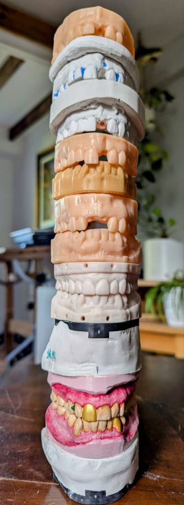 It’s only temporary, as the material holds space in one’s jaw so the body can do the repair work. If everything goes well, my smile will be filled in by August, more than a year after the accident. I keep returning home with a new resealable bag containing a cast of my mouth.
