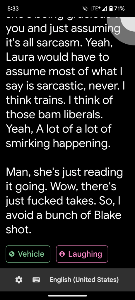 The transcribing app has a few limitations. First, it is incapable of running in the background, so if I want to comment, I have to forfeit access to ongoing chatter. Secondly, it does not discern between speakers. Thirdly, that it changes some already-transcribed words after picking up more context sometimes throws me off.