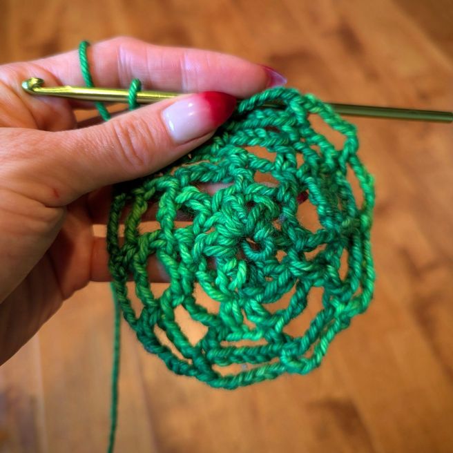 Whether I’m well-rested or not, my enthusiasm for adventure remains strong. On Friday night, I hosted Alexa and Mary for an evening of weaving and grieving. This high-octane activity had me spin yarn into what could best be described as a granny spiderweb when the assignment was to crochet a granny square.
