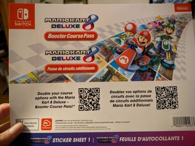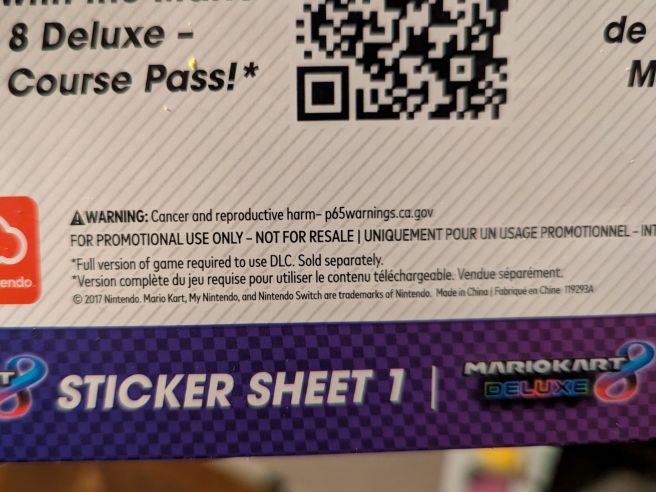 Nintendo included a sheet of stickers with my recent order for a plush blue shell, which I purchased specifically to sabotage the reigning champion, Daniel. Here’s the back of the sticker sheet: