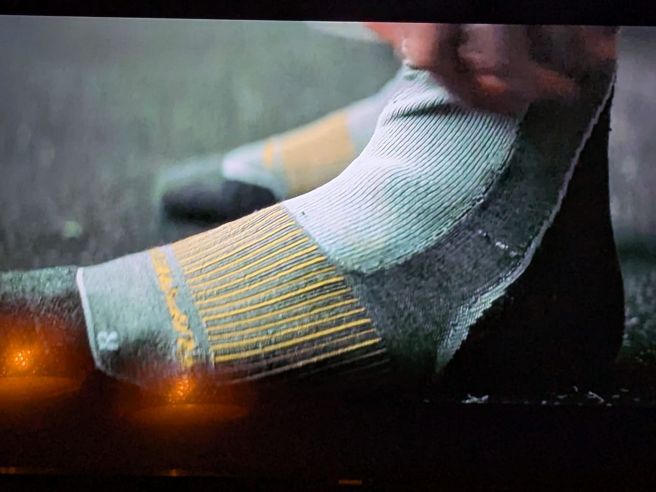The closest I came to clutching my pearls was at a close-up shot of Scott Hunter’s feet:
