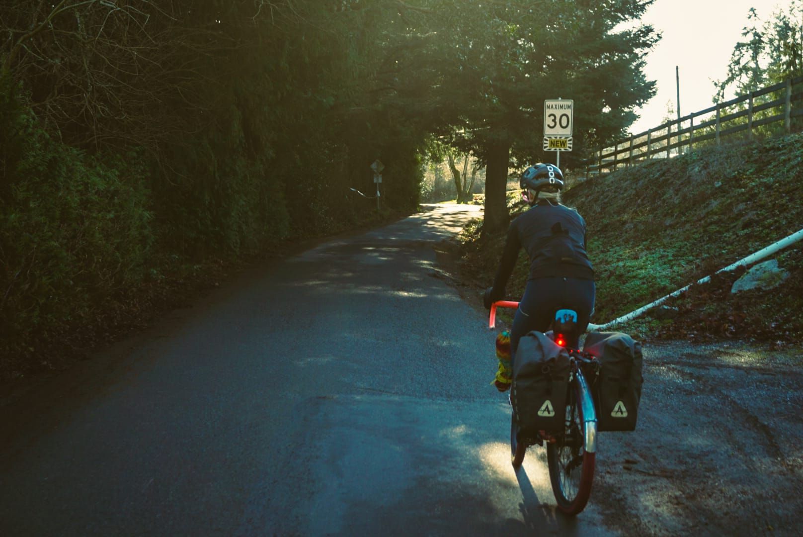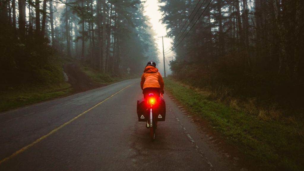 Fortunately for me, Burger had declined my offer to set up his tent, and I was grateful I hadn’t been insistent. I scrambled inside my tent to change out of my sweaty cycling gear and into almost every article of clothing I’d packed. Even at a relatively tame 60 lumens, my bike light was too powerful for use inside the tent. This, combined with the fact that I’m unable hear anything, gave me an unsettling feeling of floating in nothingness, protected only by sheets of nylon and fine mesh. I resorted to using my e-reader (specifically chapter 72 of The Tangled Tree) for illumination; its glow was just soft enough for me to see silhouettes through the mesh window of my tent.
