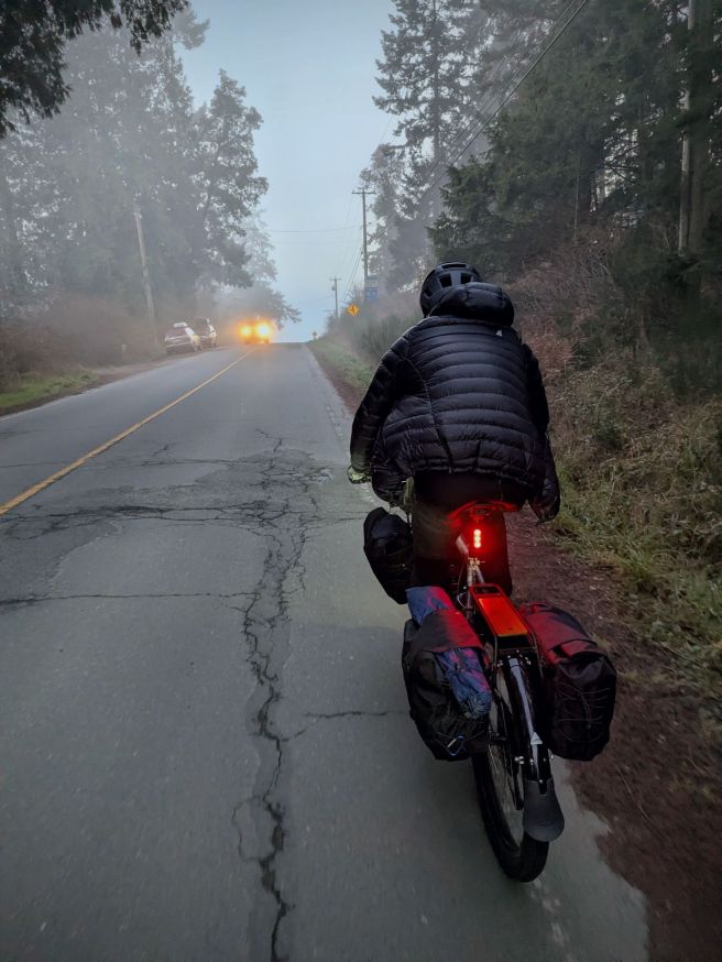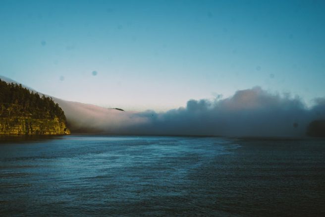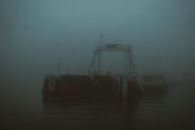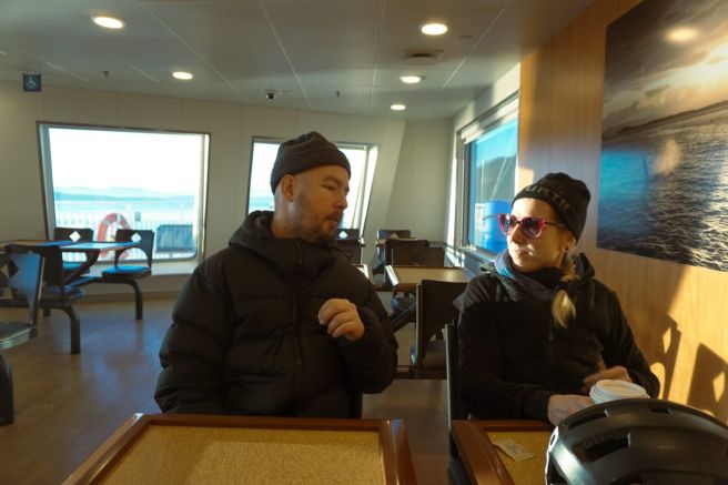 I could feel the blasts of the foghorn as the ship broke into the fog. The fog was so dense that the ship was about 30 degrees off course as the berth finally came into view. This was swiftly corrected, and we disembarked without incident, along with our bikes and an absurd amount of gear for just one night.