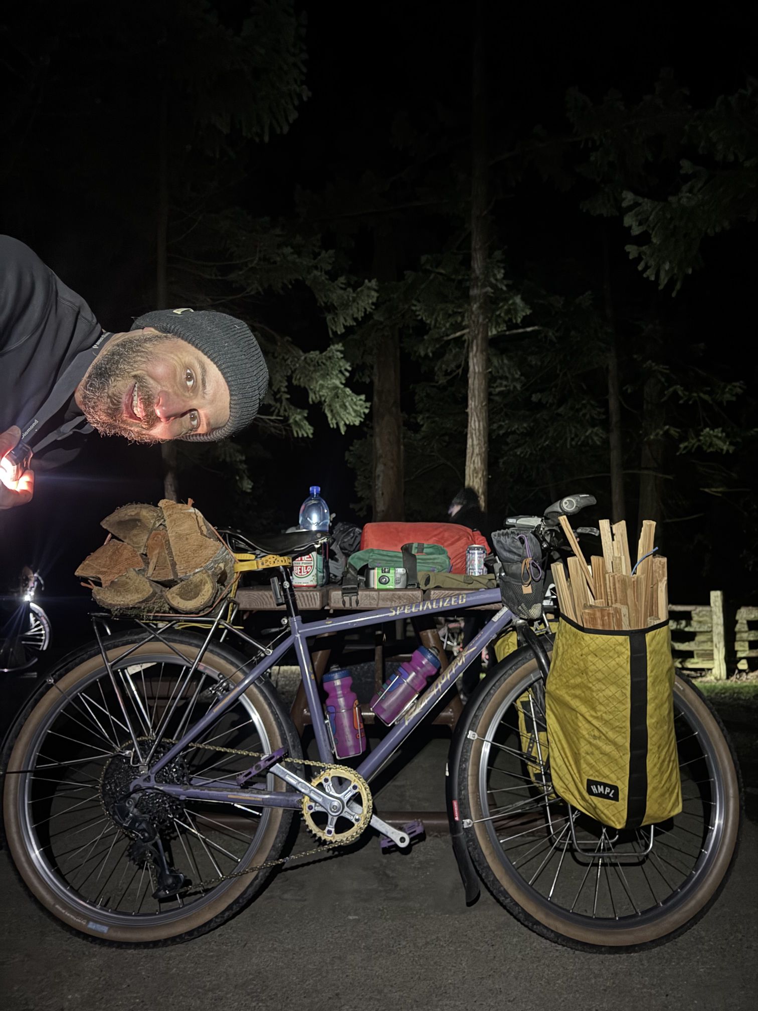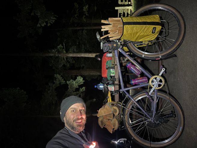 Amid the flood of Burger’s incredibly powerful bike light, I recounted my adventures setting up our campsites in the quickly diminishing daylight. Yann shone his headlamp on my phone when I showed him the above picture.