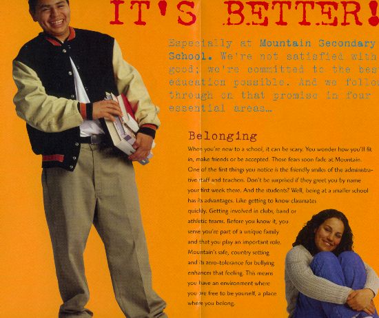 In 2000, Mountain Secondary tried to increase enrollment with a brochure featuring stock photo models.